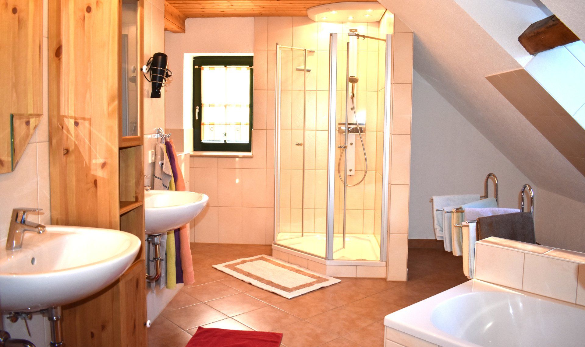Die Ferienwohnung 3 ist 145m² groß, bietet einen großen Wohn- und Essbereich, zwei separate Schlafzimmer, Küche sowie Bad mit Dusche und Badewanne und eine weitere Gästetoilette.